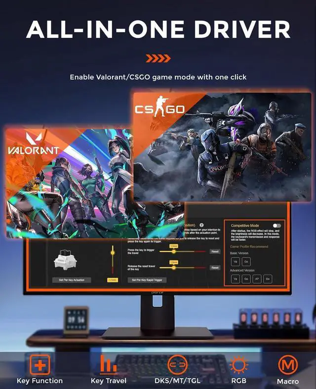 WHAT GAME NEEDS IT - All games that pursue timing, precision, and instant action need it. In FPS /RTS games, it helps with accurate movement and stopping to take the headshot, giving peeking and shooting behind walls an advantage. In FTG games, the 4-IN-1 action keys feature greatly improves combat. In MUG/Rhythm games, the extremely fast response speed of the Magnetic switch keyboard provides a more efficient operation and a better experience.