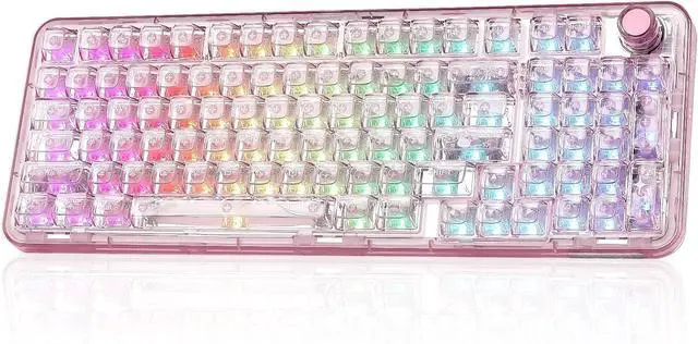 Crystal Clear Keyboard with Vibrant RGB: X98 transparent keyboard crafted from high-transparency PC material, the clear casing and shine-through keycaps maintain purity and clarity. Double-layer clear keycaps not only keep the crystal aesthetic appeal but also ensure anti-fading of keycaps characters. The RGB keyboard featuring with south-facing LEDs and 16.8 million colors, light up your gaming setups