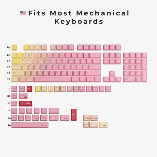 Custom Design - These cute keycaps feature a striking pastel gradient, which starts with a vibrant yellow and soft pink. Perfect for adding a punch of color to your gaming setup or to any ergonomic keyboard. Their clean, crisp legends allow max readability.