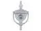 Finish: Brushed Chrome Includes 1 door knocker with glass lens viewer. Solid brass door knocker. Pictured in Oil Rubbed Bronze. Center to center: 3.75 in.. Max door thickness: 1.75 in.. 6 in. L x 3 in. W.
