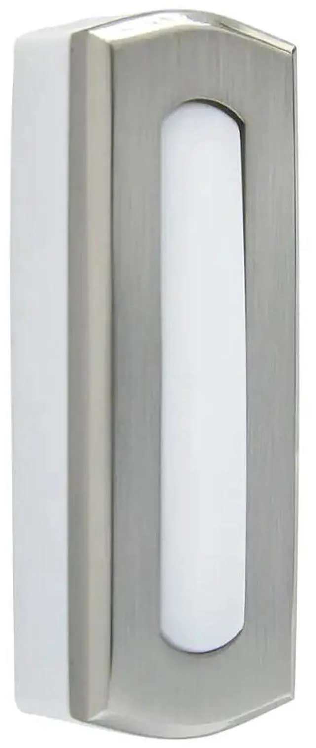 Wireless, battery operated doorbell button. For use with IQ AMERICA wireless door chimes only. Features a range of up to 300 feet depending on the chime used. Self-programming to eliminate interference from neighboring systems. Easy installation, No wiring required. Requires (1) CR2032 lithium battery, included. 1 inch wide x 2.75 inches high x 0.5 inch deep. Weighs 0.06 pound. 2 year warranty.