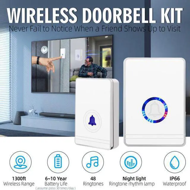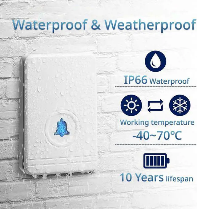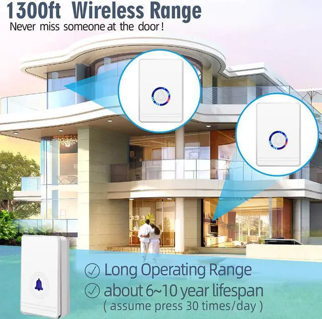 With a reliable wireless range of 1,000 feet and strong signal penetration, the doorbell will never fail to alert you when someone shows up at the door. Enjoy a reliable and hassle-free doorbell system at home, in factories, offices, classroom, apartment blocks, villas and other large areas.