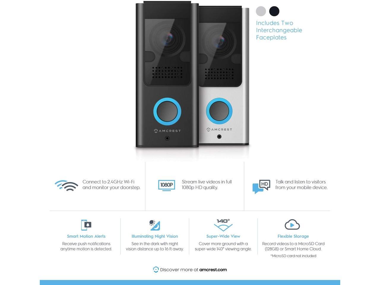- Built in microphone & speaker allows for two-way audio. Includes two interchangeable faceplates, choose from a black or silver faceplate.