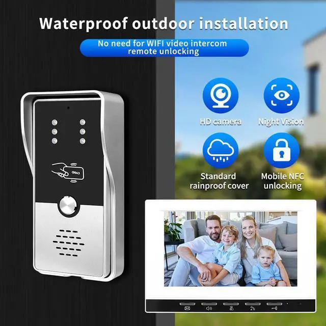VisiPower 7" Monitor Wired Multi Room Unlock Visual Intercom System Villa Apartment Doorbell with Night Vision and Mobile Phone NFC unlocking, 1* outdoor doorbell + 2* indoor monitor
