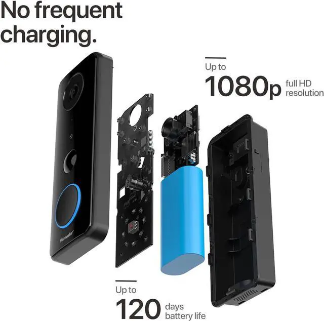 No More Frequent ChargingFeaturing special high-capacity and rechargeable battery, outdoor black doorbell both optimizes the software algorithm to prolong the battery life. Battery life can realize up to 120 days even though the doorbell comes with up to 1080p full HD resolution. No longer need to frequent charging but momently look out for your safety. Let the big trouble of frequent charging go! (Warm note: please fully charge the doorbell before use