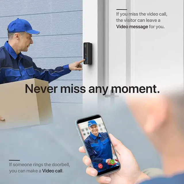 Never Miss Any Moment & No Monthly FeesIf someone rings the doorbell, you can make a video call. If you miss the video call, the visitor can leave a video message for you. Never miss any moment outside your apartment door! doorbells support to up to 128G sd card (not included) storage so that you could store data to the sd card while you fully don't need to pay monthly subscription fee!