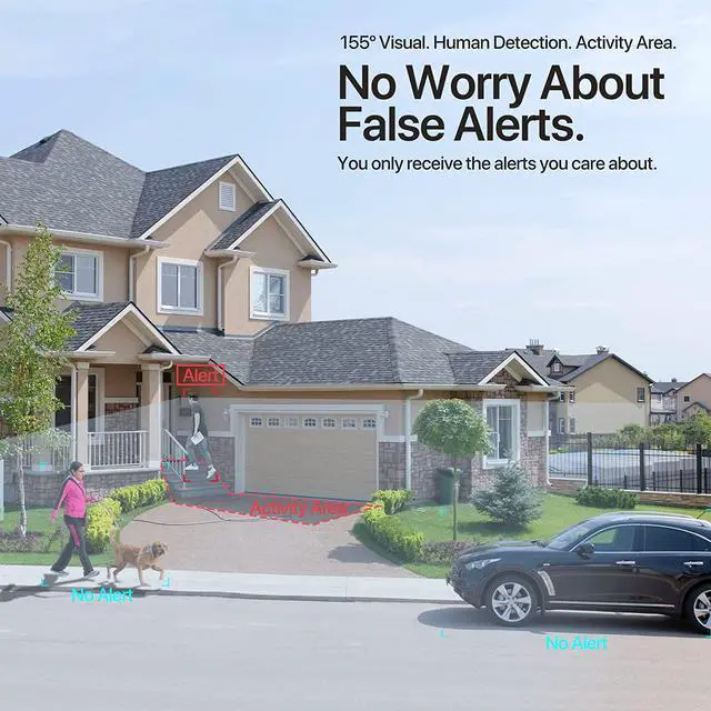 No More False Alerts With Intelligent functions of PIR motion detection, humanoid detection and smart activity area, and featuring 155° wide-angle lens, wireless smart doorbell supports to customize multiple activity areas in which it will detect motion. Set the detection zones to suit your home so you only receive the alerts you specially care about. Never be disturbed by scores of false alarms when immersed in your sweet dream!