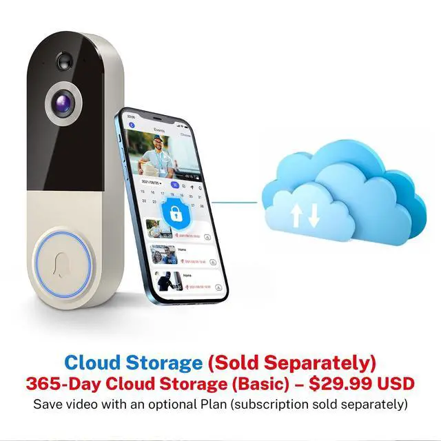 A: The doorbell camera stores videos in the cloud storage space, with a cloud storage subscription fee of $29.99 per device per year. It does not support SD cards.