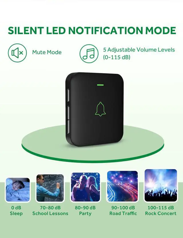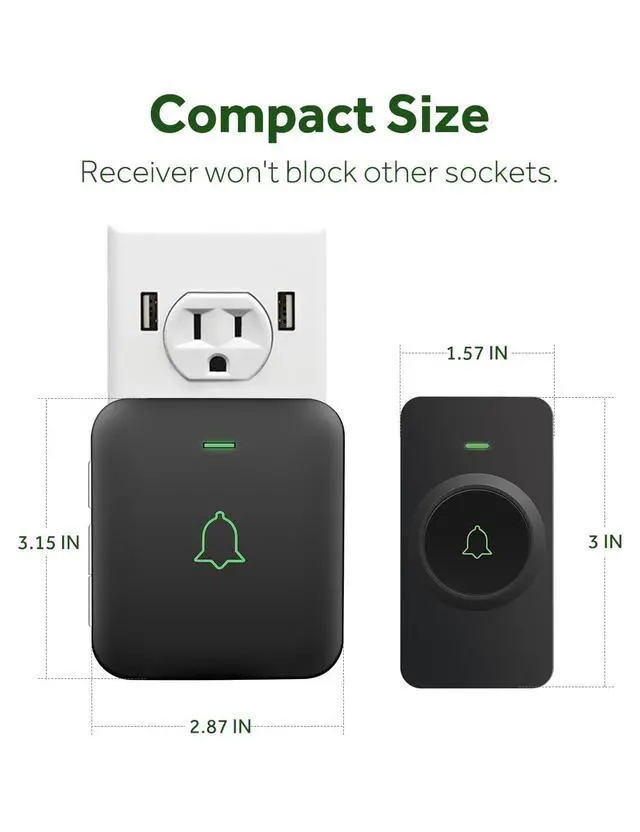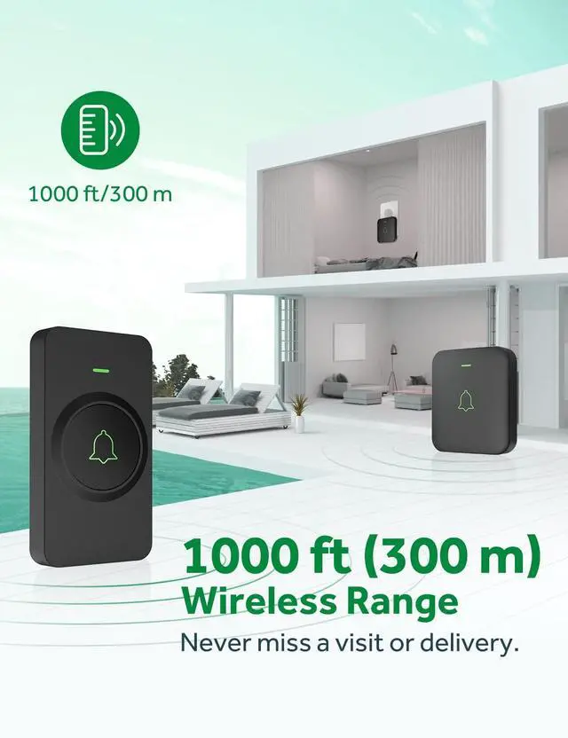 With a reliable wireless range of 1,000 feet and strong signal penetration, the doorbell will never fail to alert you when someone shows up at the door. Enjoy a reliable and hassle-free doorbell system at home, in factories, offices, classrooms, apartment blocks, villas, and other large areas.