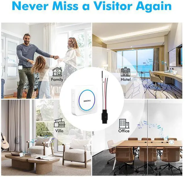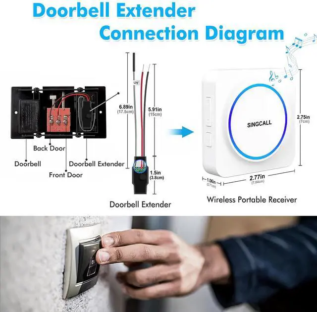 SINGCALL Wireless Doorbell Extender used for electronic, electromechanical and mechanical bells / gongs, simple & quick to integrate into any Existing Doorbell System.