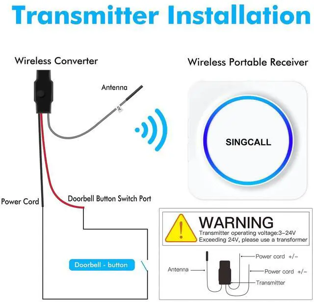 Elevate your wired doorbell chimes extender system to wireless with SINGCALL wireless transmitter.
