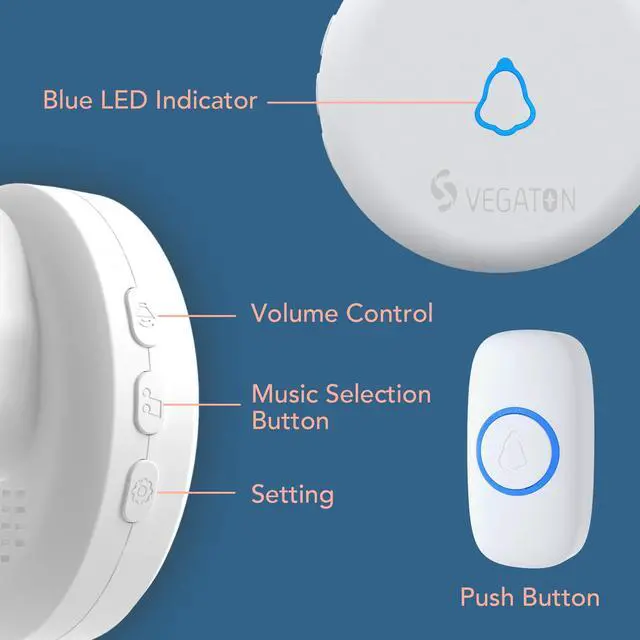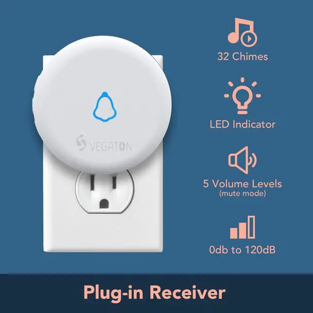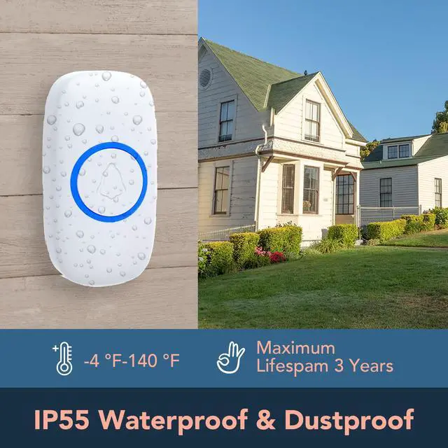 The wireless doorbell offers a wide selection of 32 chimes for your personal taste. 5-level of volume range from 0dB to 120dB to meet your needs for different occasions.