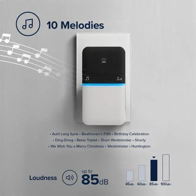 Silence your chime anytime with the manual muting feature or pick any of the 6 selectable tunes of your choosing.