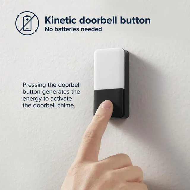 The new Wireless Kinetic Energy Doorbell requires no batteries ever.