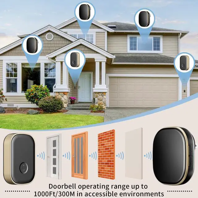 With 1000Ft wireless sensing range and powerful signal penetration, the doorbell will sounds in time to alert you when someone presses the button. Enjoy a reliable door bell system in your home, factory, office, classroom, apartment building, villa and more.