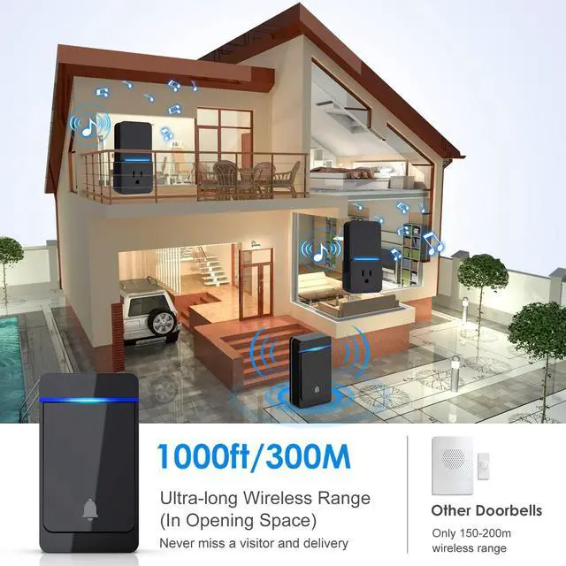 - Ultra-long wireless 1000 feet Operating range, the doorbell has strong signal penetration which ensures that you hear and answer the chimes in time.