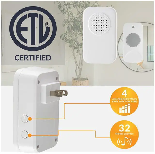 Choose the ring chime that suits you. Our wireless doorbell for home and office comes preset with 32 bright tones. If you decide to unplug and move it, it still remembers the tone you picked.