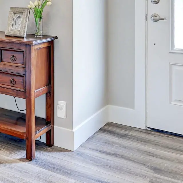 Our Plug-In Wireless Door Chime Kit comes in a classic, elegant design that blends in seamlessly in your home. The compact white receiver has a decorator feel and plugs into any 120V outlet.