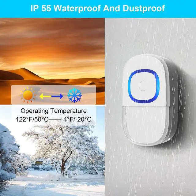 Discover the ultimate convenience with our advanced wireless doorbelldesigned for effortless DIY installation by simply plugging the receiver into an outlet and mounting the transmitter on your wall, complete with a memory function that preserves your chosen chime and volume settings even after power outages. Enjoy reliable 300-foot wireless range with stable FM signaling, ensuring you catch every visitor. Customize your experience with 32 delightful melodies and 5 volume levels, including a silent mode that uses only flashing LED lights for discreet alertsperfect as a classroom doorbell or in noise-sensitive areas. Built to last with IP55 weatherproof and dustproof durability, it thrives in extreme temperatures from -4°F to 122°F for year-round use. Versatile enough for homes, offices, schools, and more, this secrui wireless doorbell chime is an all-in-one solution that combines smart technology with practical flexibility.