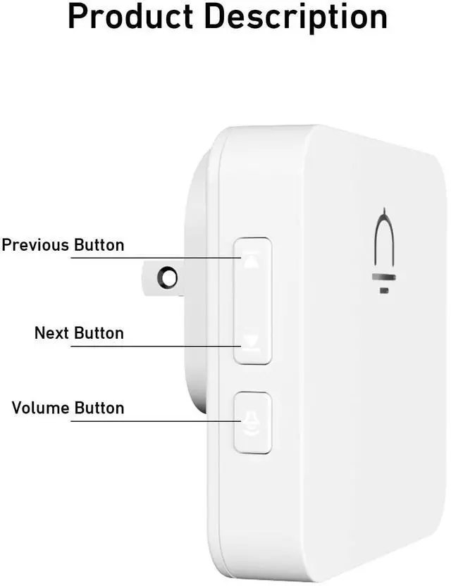 Short press the VOLUME button, and the doorbell will change the volume level from 0-120 db; Short press the next music button: switch music clockwise and play the currently selected music; Short press the previous music button: switch music counterclockwise, and play the currently selected music