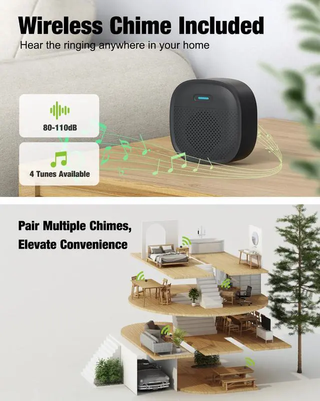 Stay updated with portable chime while in the kitchen, bedroom, or backyard. Connect a single smart doorbell to multiple chimes for added flexibility.