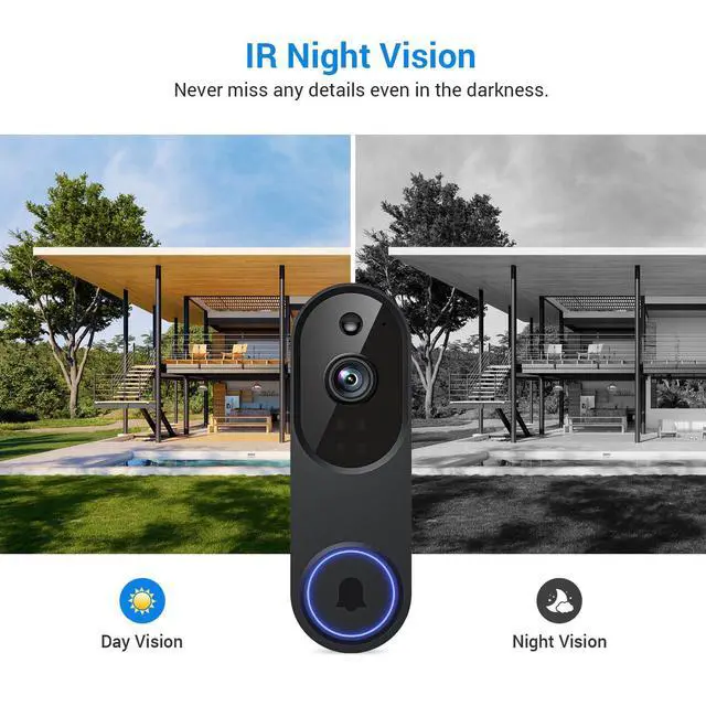 1080p Wireless Video Doorbell Camera for Home Security, Battery Powered, Live View, Cloud Storage, AI Human Detection, Night Vision, Two Way Audio
