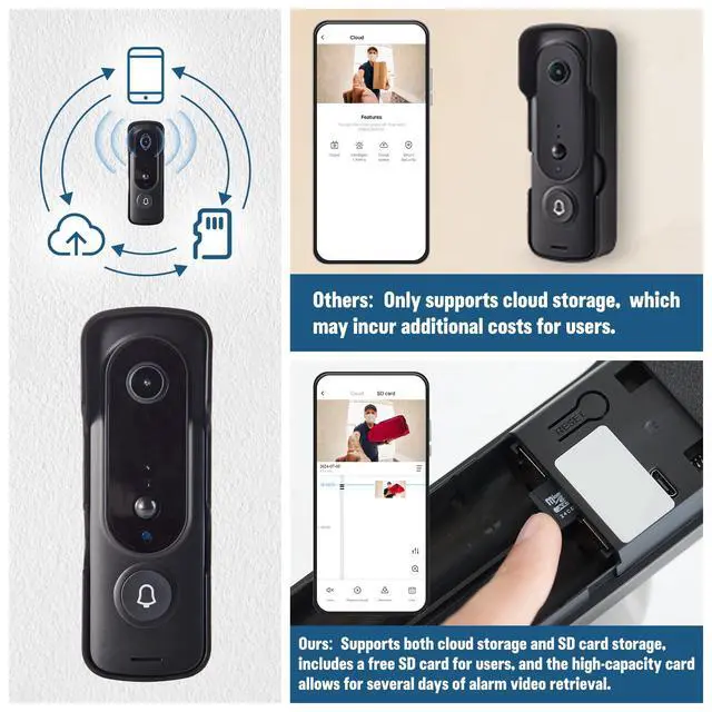 The doorbell camera wireless app also provides free cloud storage service without a monthly fee, enabling you to store records for free for up to 30 days with content being overwritten in a loop.