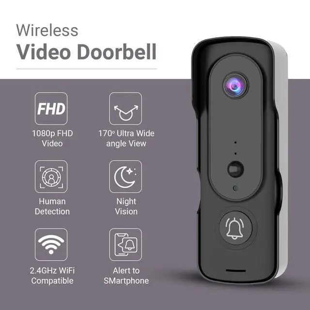 [2.4Ghz WiFi Connection]: The video doorbell camera uses 2.4Ghz WiFi to ensure a fast and stable connection (does not support 5Ghz WiFi).