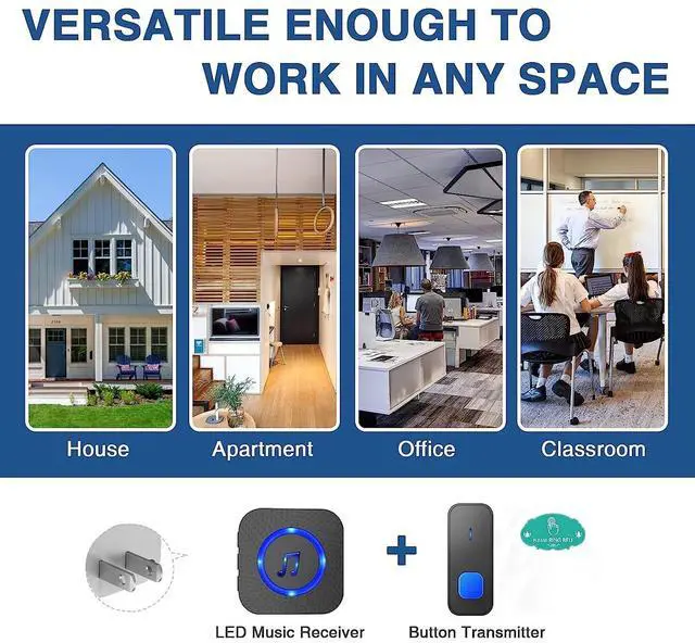 | Included Components | 2 x plug-in receivers, 1 x push button, 1 x door sign, 1 x 12V23A battery, 1 x screwdriver, 4 x dowels, 2 x double-sided adhesive tape, 1 x instruction manual |