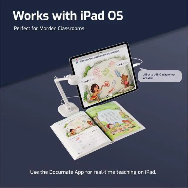 INSWAN INS-1 Document Camera works seamlessly on software, application and systems that support standard UVC devices. For enhanced features and classroom tools, download the exclusive Documate app designed specifically for INSWAN document cameras.