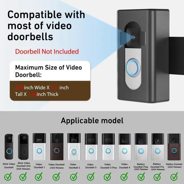 | Compatible | Video Doorbell 1/2/3/3 Plus/4/(2020 Release)/Blink Video Doorbell | Video Doorbell 1/2/3/3 Plus/4/(2020 Release)/Blink Video Doorbell | Video Doorbell 1/2/3/3 Plus/4/(2020 Release)/Blink Video Doorbell |