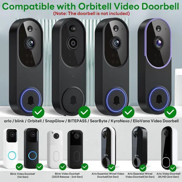 Compatible DoorbellsThis doorbell mount is designed for Orbitell video doorbell / Arlo Wireless Video Doorbell / Blink Doorbell Camera(1st and 2nd Generation). Enjoy a secure, hassle-free installation. (Doorbell not included)