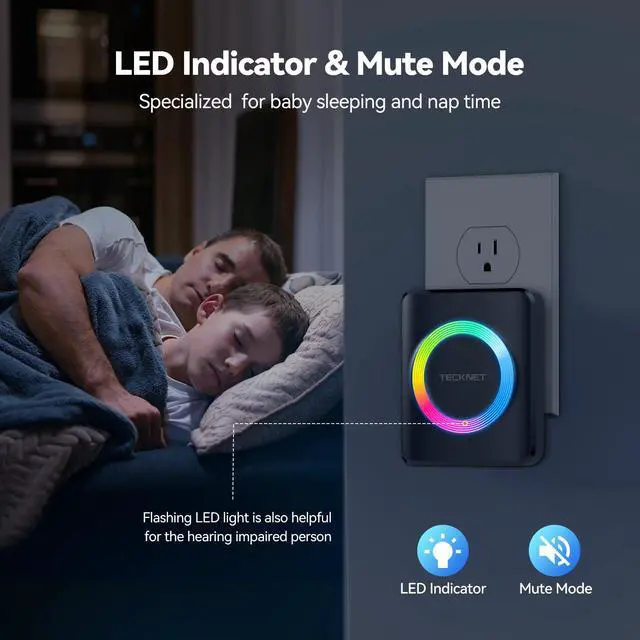 Switch to mute mode so the doorbell chime won't disturb a sleeping baby, and the LED will still flash when someone rings in this mode so you won't miss any visitor