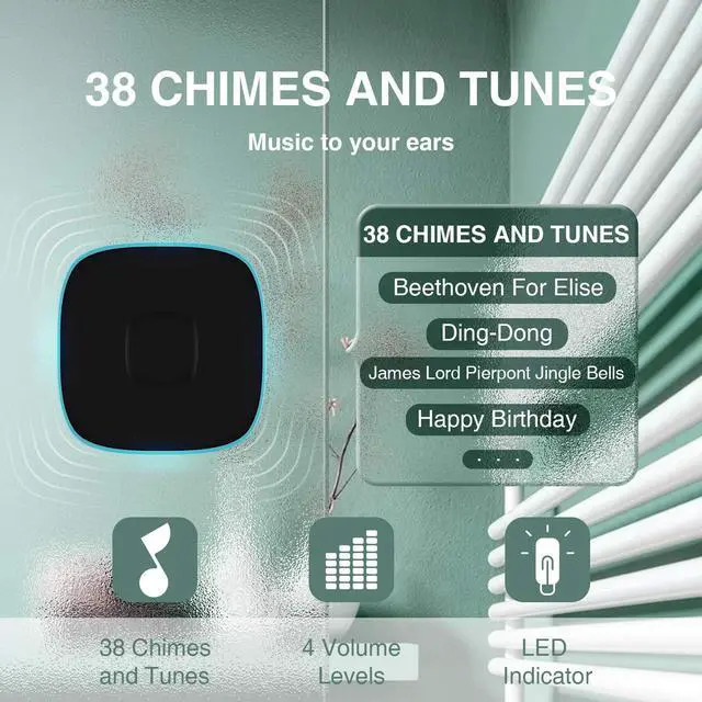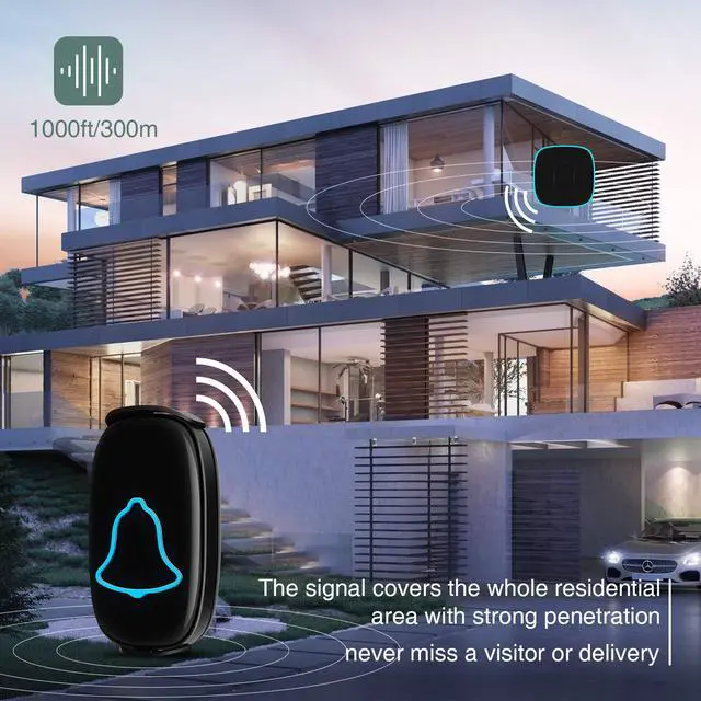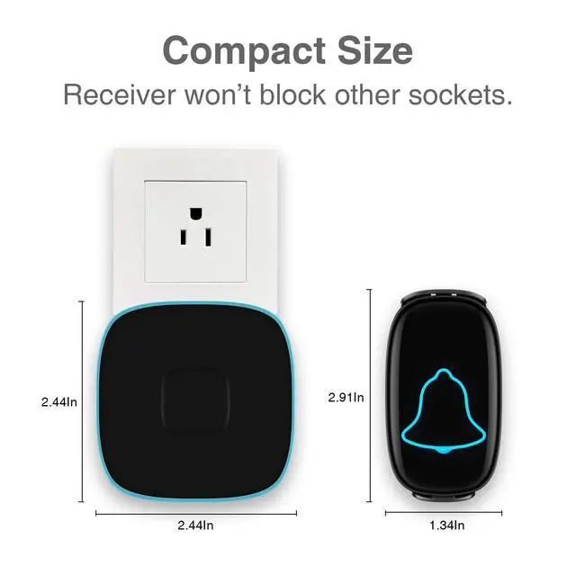 Our portable wireless doorbell kit has upgraded the design of the receiver station, giving it a smaller size of just 2.44in (W) x 2.44in (H), so that it won't block off any neighboring power sockets.