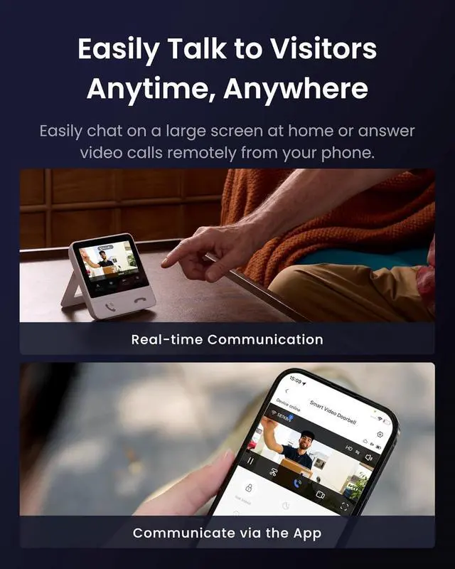 Two-way communication and quick response: With the SwitchBot wireless intercom system, you can enjoy real-time two-way voice communication from anywhere. When you are busy, you can use the doorbell with camera preset quick responses to respond to visitors immediately.