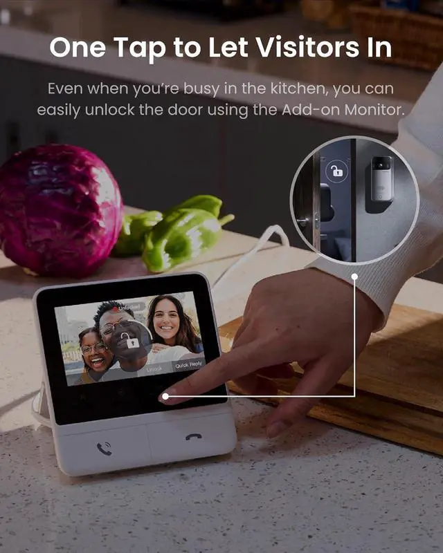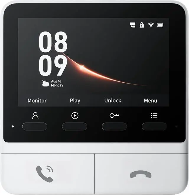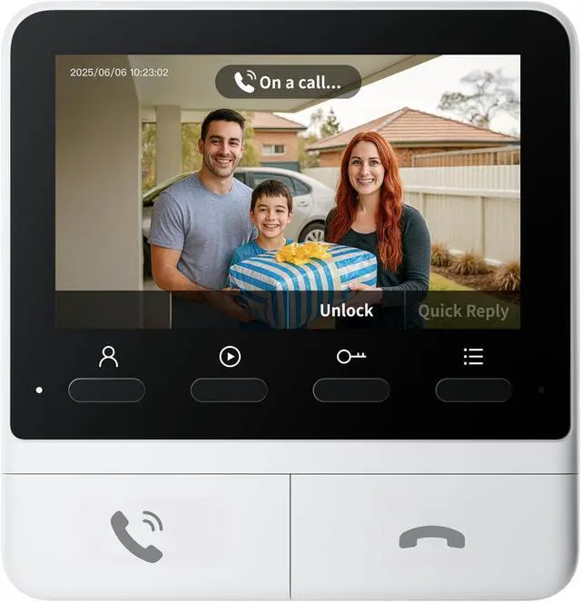 4.3 inch colour screen monitor: this screen for the video doorbell combines 6 functions. With a single touch of a button, you can quickly answer or end calls, view live and recorded images at any time via the monitoring and playback buttons. With a dedicated quick response button, you can manage deliveries and visitors without having to talk. Supports one-button release (requires SwitchBot Smart Lock).