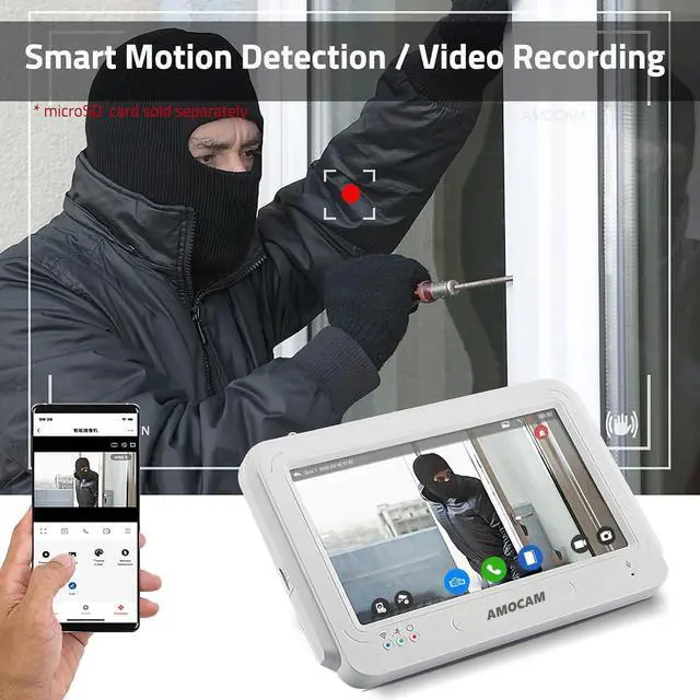 Real-Time Response, Automatically Recording When a visitor presses the doorbell or triggers motion detection, The doobell automatically captures the photo and video data is stored in your monitor and notification will be sent to your mobile phone. Events are stored in the TF card (sold separately) of the indoor monitor. You can view them on your monitor and mobile phone. It's completely FREE, No subscription, No monthly fees. You don't need to worry about it being stolen outside.