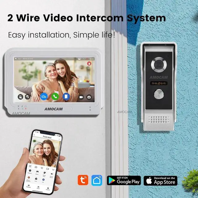 WiFi Video Doorbell with Monitor This video intercom system support with "TuyaSmart" APP, so you can control this system on your phone. Real-time online monitoring and video intercom. Talk to visitors or couriers at any time. The doorbell connection to the monitor is wired, you never have to worry that the doorbell will have a low battery and a blocked wifi signal. Even if you don't have a cell phone connected, the video doorbell system can still work properly.