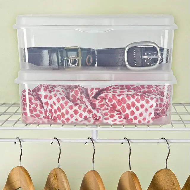 - Large FlipTop storage boxes are ideal for keeping small accessories like scarfs, belts, evening bags, or wallets neatly contained in a closet helping to reduce clutter in and around the home.