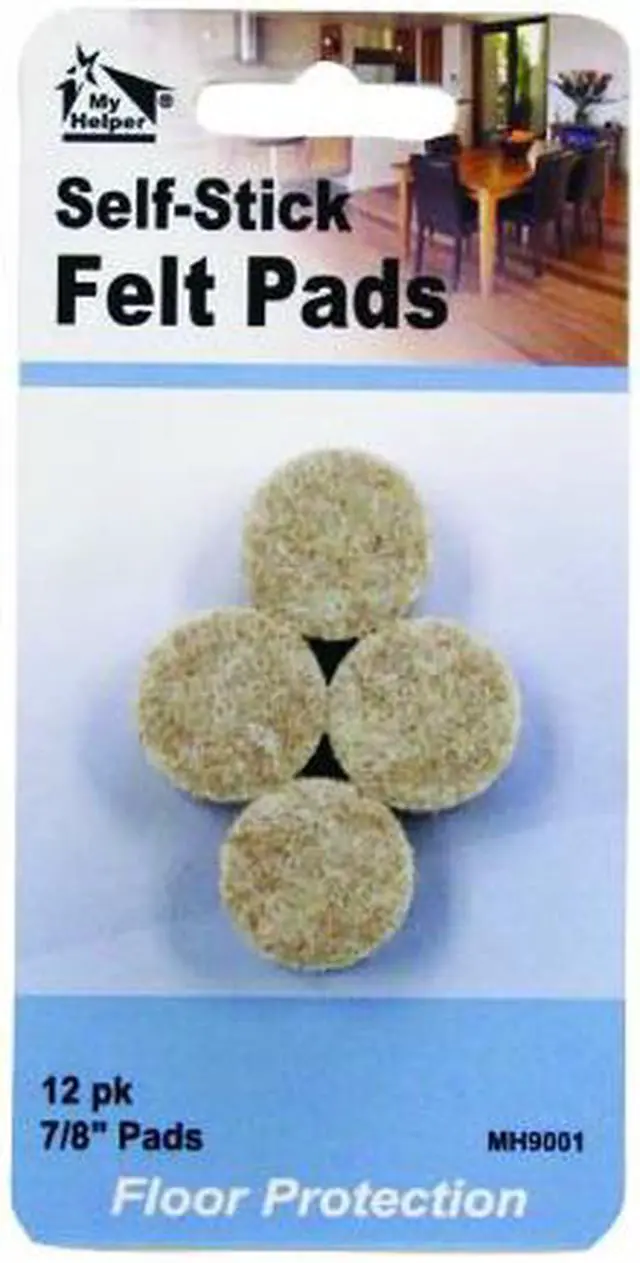 Easy to Install Self Adhesive felt pads protects surfaces against scratches and wear. The furniture felt pads prevent skidding and sliding and even reduce noise and vibration. Ideal for use on chairs cabinets chair legs desk drawers and more. Use with confidence on vinyl ceramic and hardwood floors but not recommend to use on fabric and highly textured surfaces. Self Stick Felt Perfect for hardwood laminated parquetry or tiled floors Use felts for: Cabinets Chair legs and Desk drawers Ultimate protector Includes 12 pieces