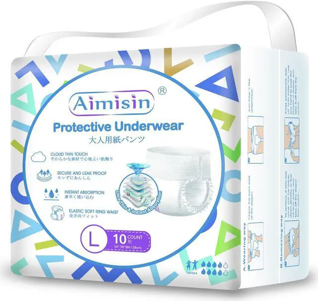 Aimisin absorbent adult pull-on underwear is an underwear-like product used for heavy incontinence protection. With high absorbency capacity, this adult underwear can absorb a large quantity of liquid. Its pull-on design features tear-away side seams for easy removal and disposal. Advanced odor control system and innovative core lock away wetness and odors. Inner and outer leg guards can prevent leakage and make you feel secure all day.