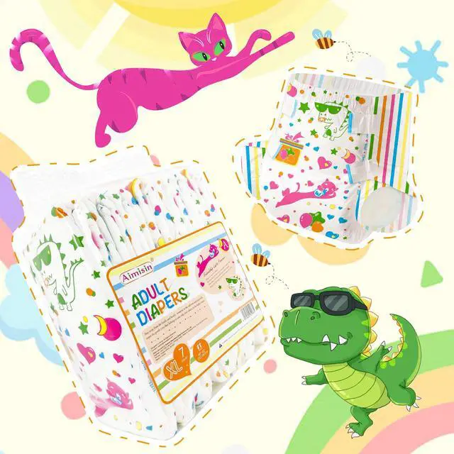 Featuring 4 extra strong adhesive tapes to keep this disposable diaper snugly in place. With soft but strong printed outer plastic backing featuring our Miss Fox and Mr. Bear. These ABDL adult diapers are not only cute but also thick and absorbent. These are the perfect diapers to get you all the way through the night comfortably. 3D Leak Guards, refastanable tape tabs, stretch elastic waistband, all these features create a cute, reliable, well-fitting diaper for all your incontinence needs.