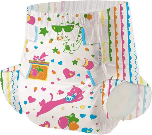 Featuring 4 extra strong adhesive tapes to keep this disposable diaper snugly in place. With soft but strong printed outer plastic backing featuring our Miss Fox and Mr. Bear. These ABDL adult diapers are not only cute but also thick and absorbent. These are the perfect diapers to get you all the way through the night comfortably. 3D Leak Guards, refastanable tape tabs, stretch elastic waistband, all these features create a cute, reliable, well-fitting diaper for all your incontinence needs.