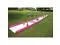 The party waterslide comes with 2 inflatable sleds for a comfortable, smooth, and slippery ride. Race down the lane towards 6 mega bowling pins that stay standing up on your favorite slope with the water ballast system. You won't need to add soap into the mix. With the zig-zag patterned sprinkler system, you can slip-n-slide down this 25-foot long waterslide without hitting a dry spot.
