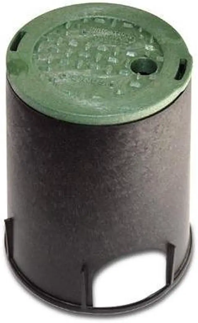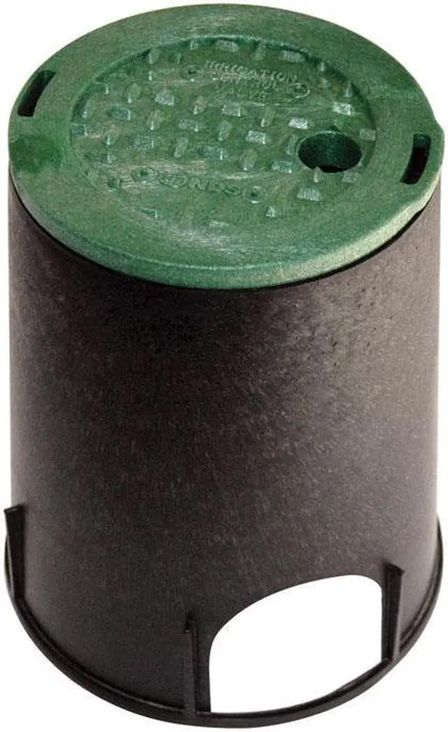 6", Round, Black, Irrigation Control Valve Box, With Green Cover.
