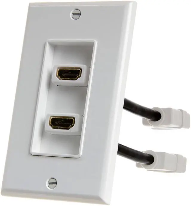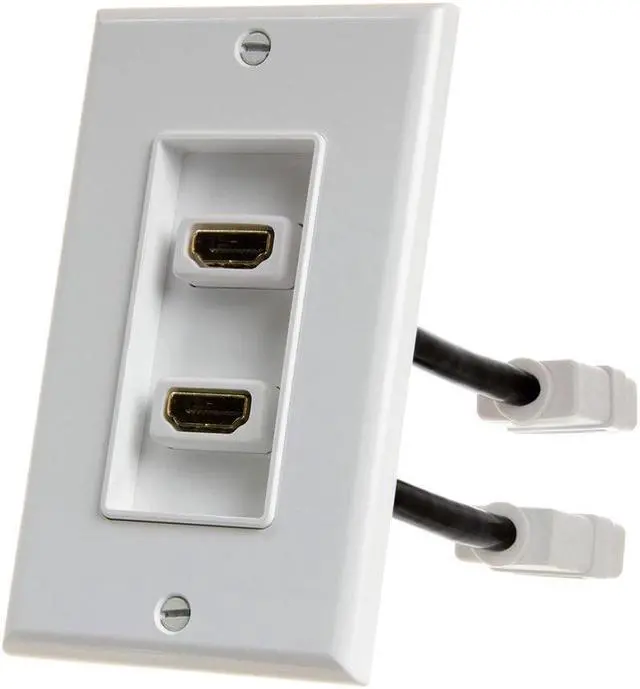 2-Port female HDMI wall plate offers two in-wall 19-pin HDMI digital video receptacle for easy connections between a high-speed HDMI video output or standard HDMI video output and HDMI-equipped projectors, remote displays or home theaters.