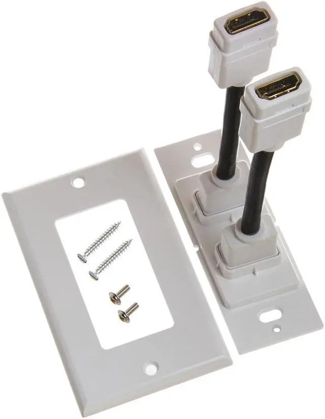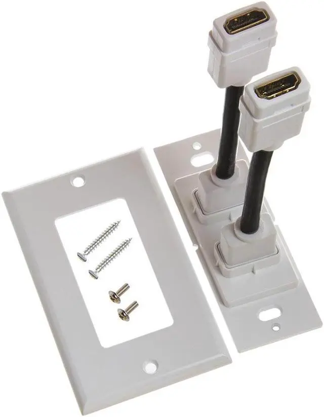 Wall plate has screw-in port design that ensures snug, secures HDMI connections and set up in-wall HDMI cabling as well as save on installation time. Superior construction & materials make for the best contact connection between HDMI equipment.