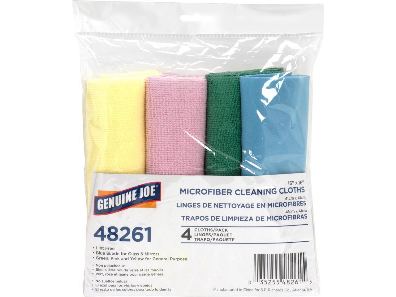 Genuine Joe Microfiber Cleaning Cloths Lint-free 16"x16" 4/PK Assorted 48261