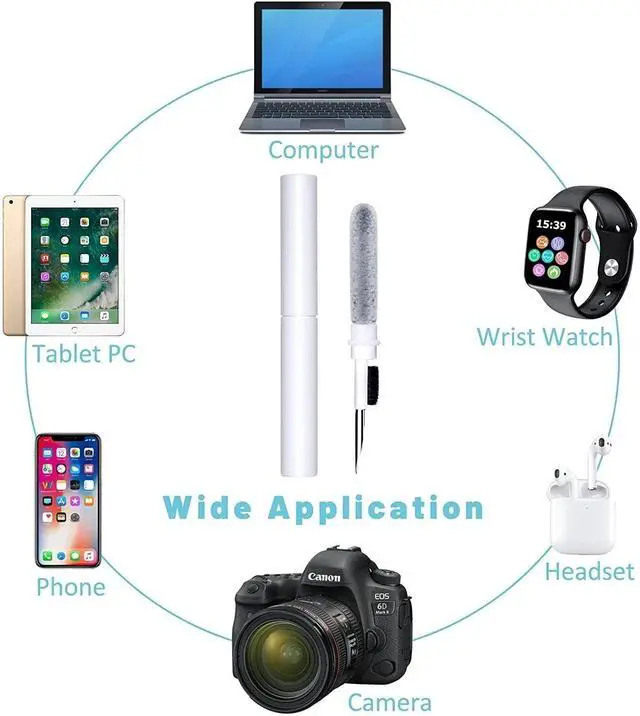 [Small and exquisite] The headphone cleaning kit is only half the size of a pencil. The design is very clever. One end is a flocking sponge, a soft sponge used to clean the debris in the Bluetooth headset box, and the other end is a metal pen tip with a brush on the side. , The pen tip can clean the difficult-to-clean dirty things in the gap, such as earwax, dust, etc. The brush is to sweep away the dirt here.