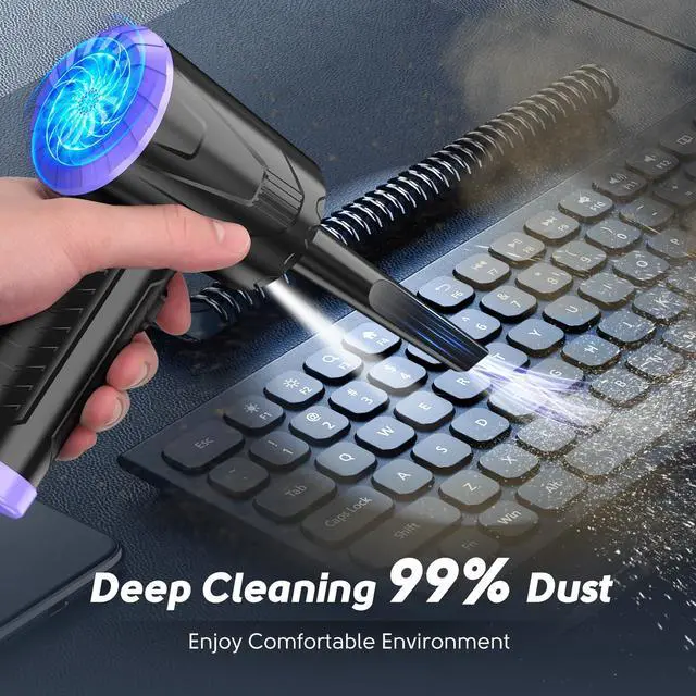 Equipped with USB C charging cable, it's more convenient to be charged by computer, mobile power supply and car charger, etc., which is more cost-saving than canned air duster.